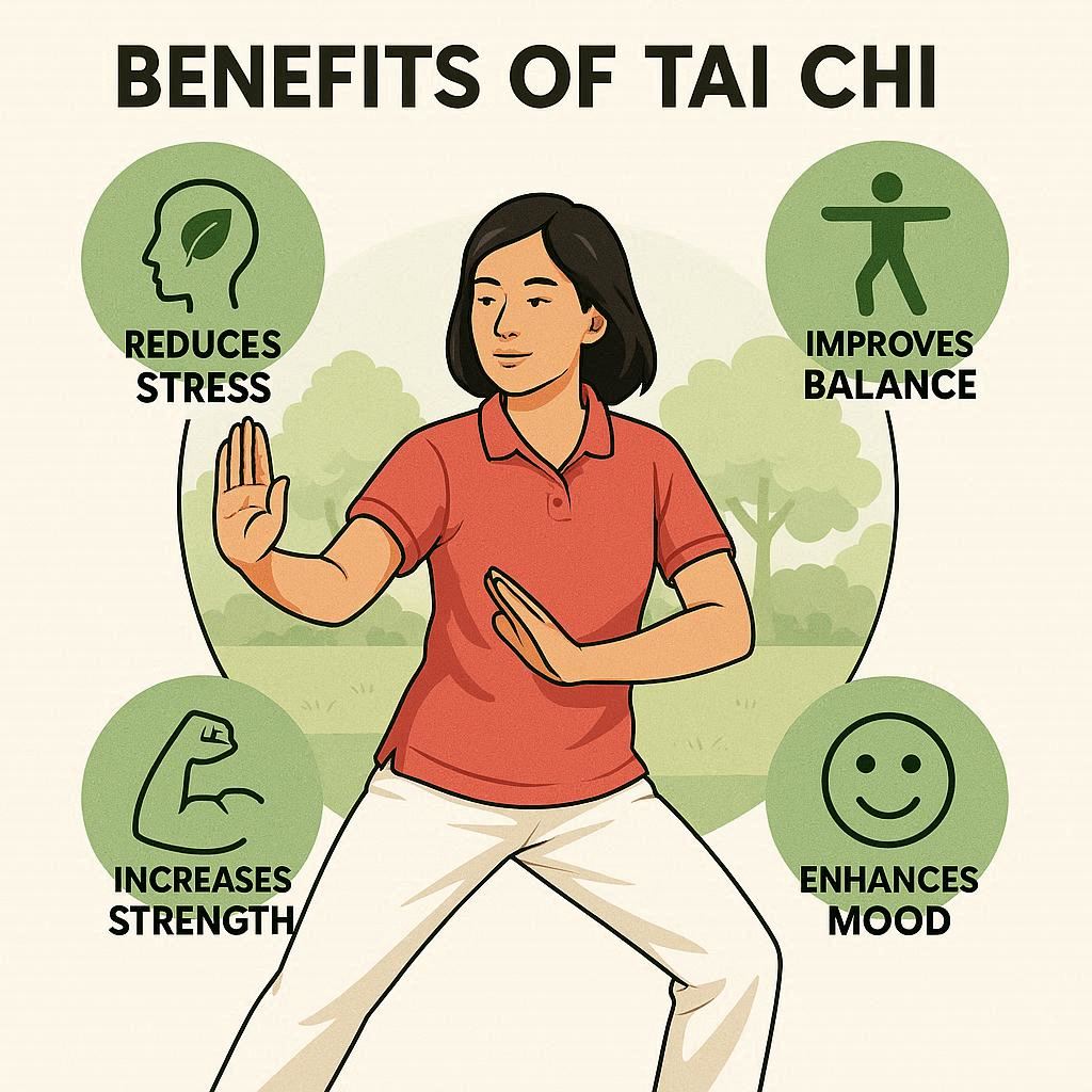 Unlike high intensity workouts, Tai Chi involves gentle movements that are easy on the joints. It does not require equipment, a gym membership, or large space. This makes it highly suitable for Nepal, where access to fitness facilities may be limited outside major cities.